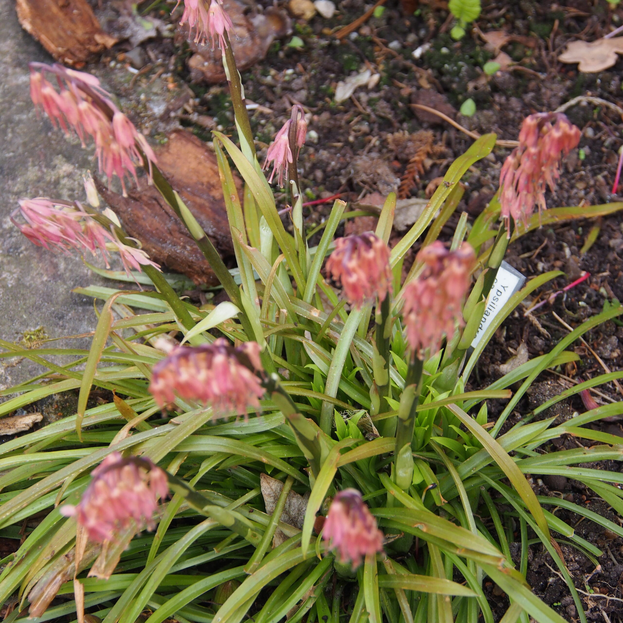 Ypsilandra wächst als überwinternd-grüne, ausdauernde krautige Pflanze. Blüte: weiß-rosa, im verblühen rosa-orange